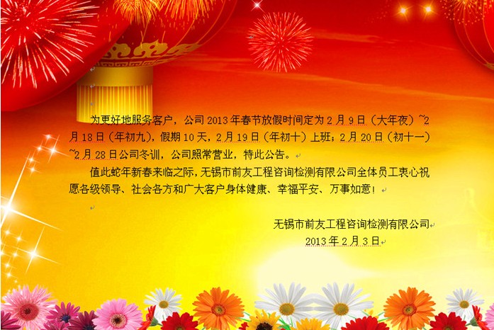 關于2013年春節(jié)放假的公告