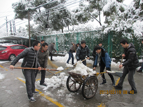 正月初十,年味漸遠。正當我們收拾好心情,投入新年工作的時候,一場大雪與我們不期而遇。厚厚的白雪覆蓋了無錫的大街小巷,看公司銀裝素裹,十分欣喜。 清早,為了方便日常通行,前友的員工們自發(fā)的尋找工具,進行掃雪。由于條件的限制,配備的掃雪工具只有鐵锨和掃帚,加上低溫天氣,使除雪工作更加艱難,員工們的手和臉都凍得通紅,然而,這一切絲毫沒有影響大家掃雪的熱情和工作效率。隨后,在檢測室孟主任、綜合辦陳主任的帶領(lǐng)下,大家發(fā)揚了吃苦耐勞、頑強拼搏的戰(zhàn)斗精神,團結(jié)協(xié)作,頂著寒風,將公司場地積雪清掃干凈。柳絮般的小雪融合著前友人的團結(jié)與激情,此情此景不禁讓人感嘆,前友人就是這樣一個有凝聚力、正能量的團體! 新春上班第一天有趣的掃雪活動,展示出了前友人的精神面貌,堅信蛇年會有個好兆頭!