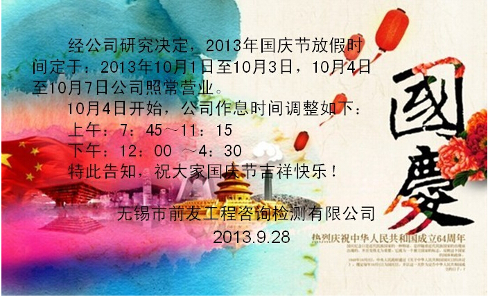 | 關于國慶節(jié)放假及節(jié)后營業(yè)時間調整的公告 | ||