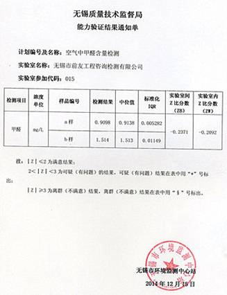 | 年末報喜:公司順利通過市空氣中甲醛含量檢測能力驗證 | ||