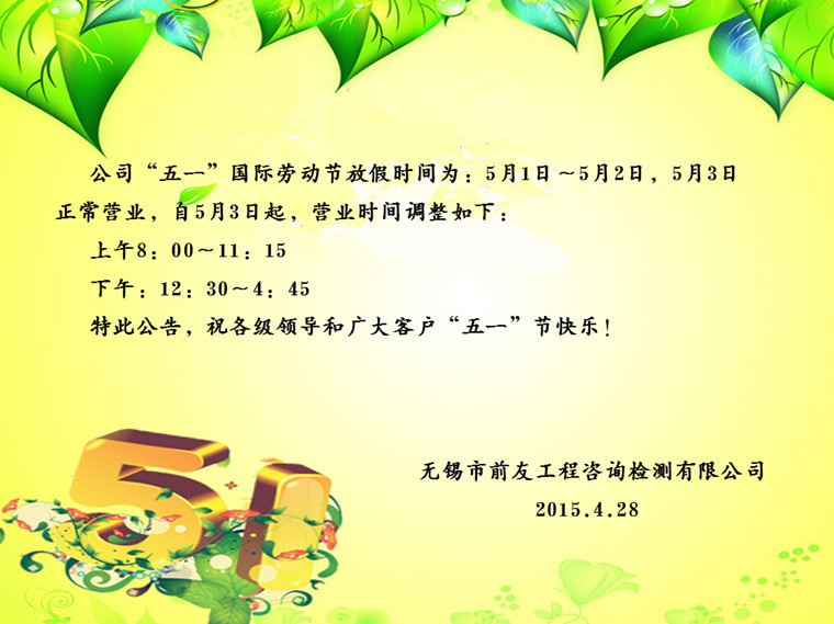 網址: http://www.engineinfo.com.cn| 關于“五一”節(jié)放假及節(jié)后營業(yè)時間調整的公告 | ||
