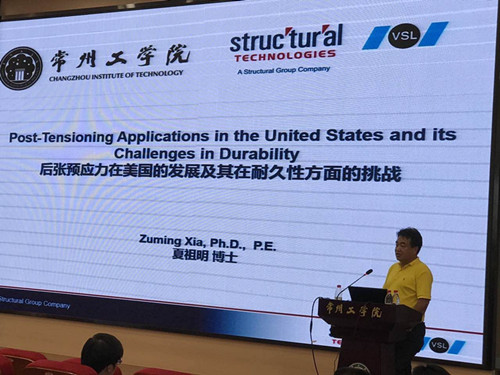6月14日,在常州工學(xué)院遼河路新校區(qū)報告廳舉辦了“后張預(yù)應(yīng)力在美國的發(fā)展及其在耐久性方面的挑戰(zhàn)”學(xué)術(shù)報告會。 報告會由夏祖明博士主講。夏博士現(xiàn)為美國結(jié)構(gòu)集團(STRUCTURALTECHNOLOGIES)及VSL國際公司在美國德克薩斯達拉斯的技術(shù)總監(jiān)。在東南大學(xué)土木工程系畢業(yè)后留校任教并兼讀在職博士,1996年赴美國密歇根大學(xué)學(xué)習(xí)并獲得結(jié)構(gòu)工程博士學(xué)位,在VSL工作的15年,參與了美國多個重大項目的預(yù)應(yīng)力設(shè)計和施工,主持參加的項目獲得了美國后張預(yù)應(yīng)力協(xié)會在橋梁和房屋應(yīng)用的最高獎。學(xué)術(shù)報告中,夏博士與大家分享了大量工程實際應(yīng)用的經(jīng)驗和國際預(yù)應(yīng)力研究的最新成果。 常州工學(xué)院近200名師生與會聆聽了學(xué)術(shù)報告,東南大學(xué)5179班級派代表參加了這次學(xué)術(shù)交流活動。