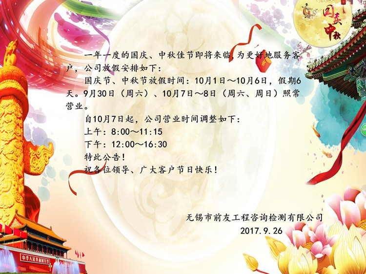 | 關(guān)于國慶、中秋節(jié)放假及節(jié)后營業(yè)時(shí)間調(diào)整的公告 | ||