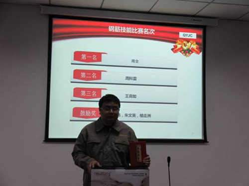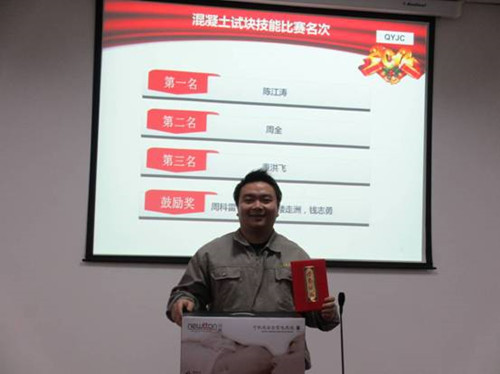 歡歡喜喜送玉兔,熱熱鬧鬧迎騰龍! 新年伊始,2月4日下午我公司順利舉行了檢測操作技能比賽(砼試塊、鋼筋),比賽選手為我公司檢測員,比賽由公司技術負責人王大遠、檢測室主任孟巍巍以及主任助理周惠擔任評委。選手們個個斗志昂揚、充滿激情,技能比武,熱浪不斷掀起,每位選手都不甘示弱。砼試塊檢測比賽過程中,選手們嚴格按照規(guī)范進行操作——開機預熱、測量試塊尺寸、輸入任務單編號、選擇量程和加載速度以及進行最后的數據處理,表現(xiàn)的有條不紊。鋼筋檢測過程中,選手們在稱重和量斷后標距這兩個環(huán)節(jié)中尤為認真,生怕讀錯數據影響最終的檢測結果。比賽一結束,選手們互相交流經驗,操作的注意事項等。 經過激烈的角逐,砼試塊檢測的前三名分別是老員工陳江濤、周全以及新進員工董洪飛。周全、周科雷、王克如分獲鋼筋檢測的一二三名。 賽后大家總結了自己操作過程中的不足互相取長補短,鞏固了常規(guī)材料檢測項目的知識,為2012年的檢測工作開了個好頭。龍年,吉祥年,相信前友檢測公司會有豐瑞成績!