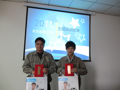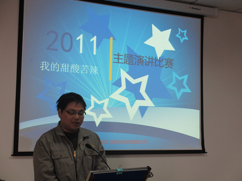 2012年2月5日,我公司在大會議室舉辦《2011,我的甜酸苦辣》主題演講比賽,公司總經(jīng)理鄒明、技術(shù)負責(zé)人王大遠、綜合辦主任陳衛(wèi)擔(dān)任本次比賽的評委,演講比賽由青年員工鮑哲激情主持。 本次比賽共15位員工參加,他們都以飽滿的姿態(tài),充滿激情的語言,在舞臺上展示自己的風(fēng)采。選手們感人至深的細節(jié)打動了每一位聽眾和評委,慷慨激昂的片段給我們留下了深刻的印象。我們的掌聲和喝彩是他們成功的見證!其中陳江濤同志憑借標準的發(fā)音,優(yōu)雅的臺風(fēng)和自信的表現(xiàn)獲得了本次比賽的一等獎,孟巍巍、董洪飛、朱文英、樓走洲、崔銀翠等五位同志分別摘得二、三等獎。緊張激烈的比賽后,總經(jīng)理鄒明為本次比賽做了精彩的點評,隨后評委們?yōu)楂@獎選手頒發(fā)榮譽證書及獎品,本次比賽在一片歡聲笑語中落下帷幕。 辭舊迎新,高歌奮進,昨天的業(yè)績已成為歷史, 明天的征程任重道遠。展望未來,我們堅信在公司領(lǐng)導(dǎo)的正確指引下,在全體干部員工的共同努力下,前友這個大家庭一定會更加和諧、更加溫暖、更加輝煌,讓我們?yōu)檫@個幸福的大家庭添磚加瓦、增光添彩、再立新功吧!讓我們以蓬勃的朝氣、昂揚的銳氣、無畏的勇氣,勵精圖治、開拓創(chuàng)新,譜寫我們前友新一年更加輝煌燦爛的新篇章!
