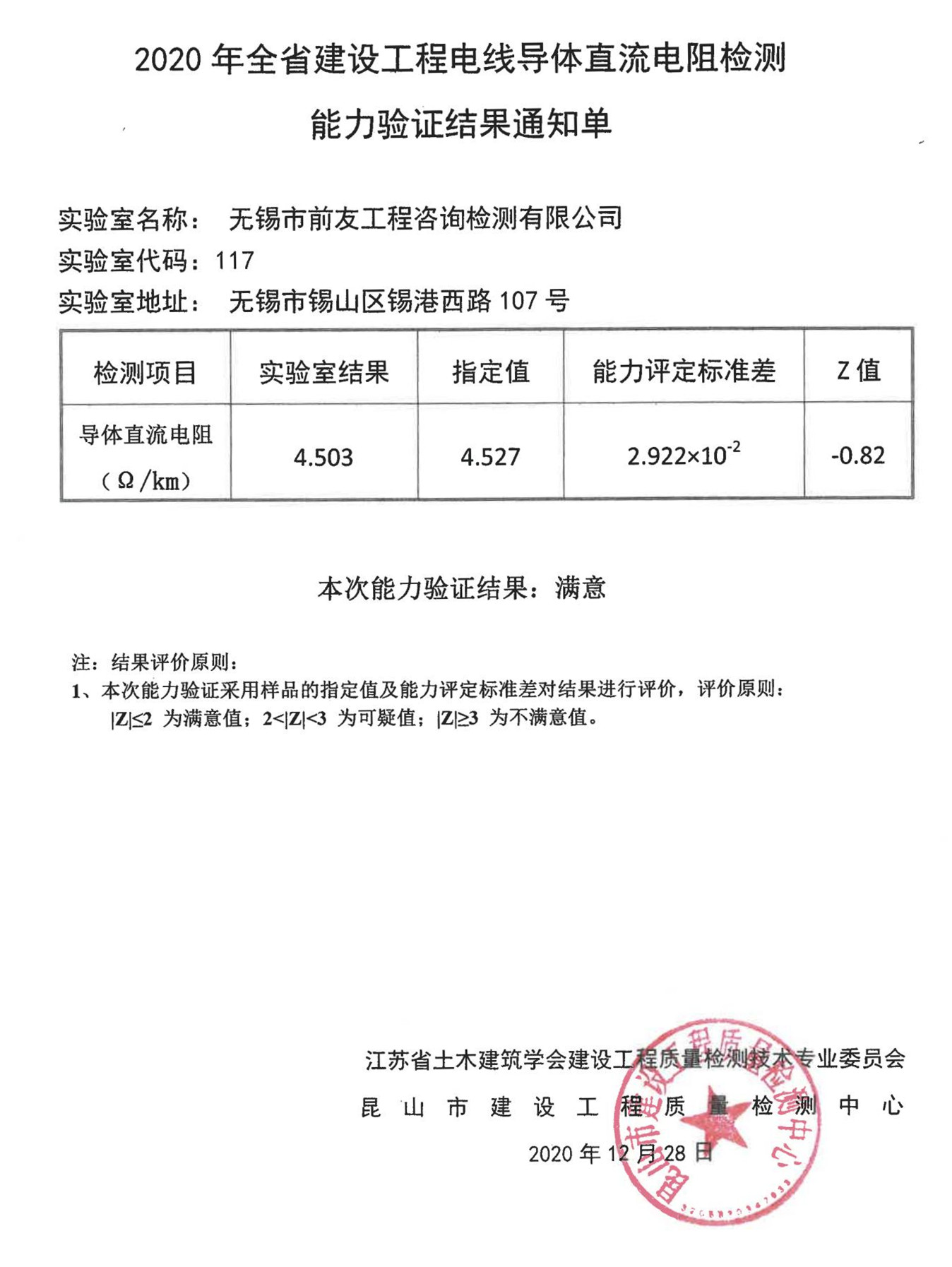 根據(jù)《省住房城鄉(xiāng)建設(shè)廳關(guān)于做好2020年全省建設(shè)工程質(zhì)量檢測能力驗證工作的通知》文件要求,江蘇省土木建筑學(xué)會建設(shè)工程質(zhì)量檢測技術(shù)專業(yè)委員會委托昆山市建設(shè)工程質(zhì)量檢測中心組織開展了2020年全省電線導(dǎo)體直流電阻檢測能力驗證。2020年12月31日,發(fā)布了能力驗證結(jié)果。 近日,公司收到2020年全省電線導(dǎo)體直流電阻檢測能力驗證結(jié)果通知單與能力驗證結(jié)果滿意證書。