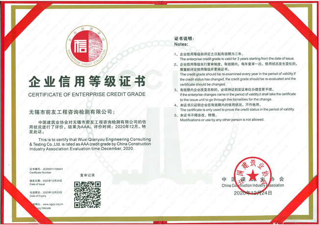 近日,公司收到了中國建筑業(yè)協(xié)會頒發(fā)的“關(guān)于公布2020年度建筑業(yè)AAA級信用企業(yè)(檢測機構(gòu))的通知”和建筑業(yè)AAA級信用企業(yè)證書。 為加快推進社會信用體系建設(shè),促進企業(yè)誠信經(jīng)營,中國建筑業(yè)協(xié)會質(zhì)量管理與監(jiān)督檢測分會,根據(jù)“關(guān)于開展2020年度建筑業(yè)AAA級信用企業(yè)(檢測機構(gòu))評價推薦工作的通知”要求,本著公開、公平、公正的原則,通過檢測機構(gòu)自愿申請、各省市相關(guān)單位推薦,在相關(guān)網(wǎng)站上排查復(fù)核,專家綜合評價及網(wǎng)上公示,確定北京環(huán)安工程檢測有限責(zé)任公司等129家檢測機構(gòu)為2020年度建筑業(yè)AAA級信用企業(yè)(檢測機構(gòu)),現(xiàn)已發(fā)文公布。 誠信企業(yè)的建設(shè)永遠在路上。無錫市前友工程咨詢檢測有限公司將以此作為加快公司高質(zhì)量發(fā)展的新動力,進一步加強信用體系建設(shè),練實內(nèi)功,優(yōu)化服務(wù),積極履行社會責(zé)任,為促進行業(yè)持續(xù)健康發(fā)展做出新的貢獻。