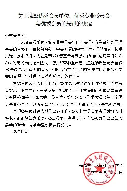 | 信息窗:無錫市土木建筑工程學(xué)會第九屆五次理事會議順利召開 | ||
